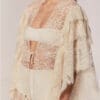 Featuring a front tie closure and flowing sleeves, this piece is designed for layering and pairs beautifully with beachwear, enhancing bikinis and swimsuits with elegance.