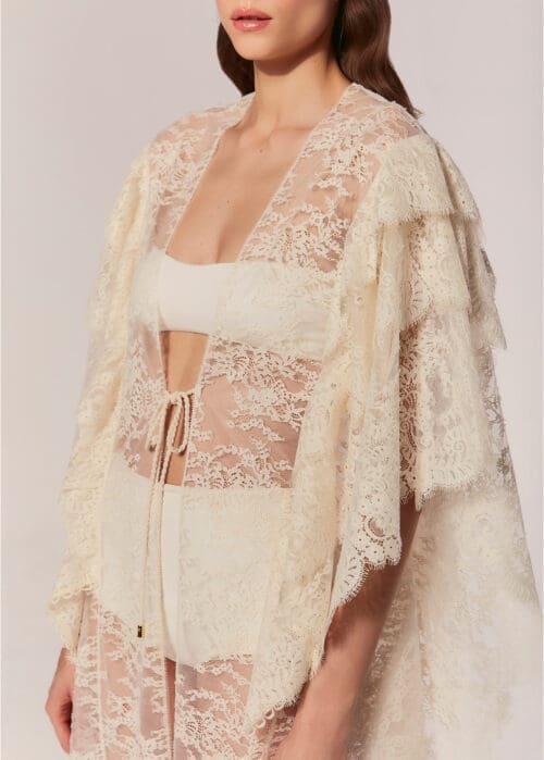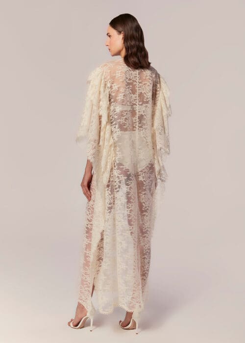 Delicate and feminine, the Ziba Lace Long Kaftan is a symbol of effortless sophistication. Crafted in sheer lace, it brings fluidity and lightness to the silhouette, creating a refined and sensual effect.