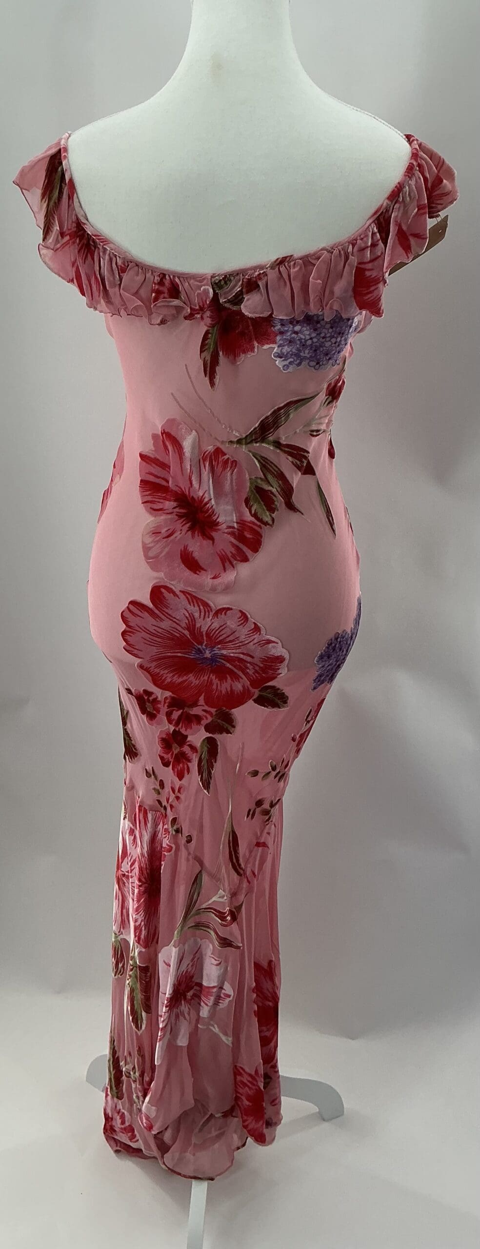 Midi/Long Dress Pink Floral Devore Fabric. Size:Small Busto/Chest:92Cm Comprimento/length: 1,36Mts