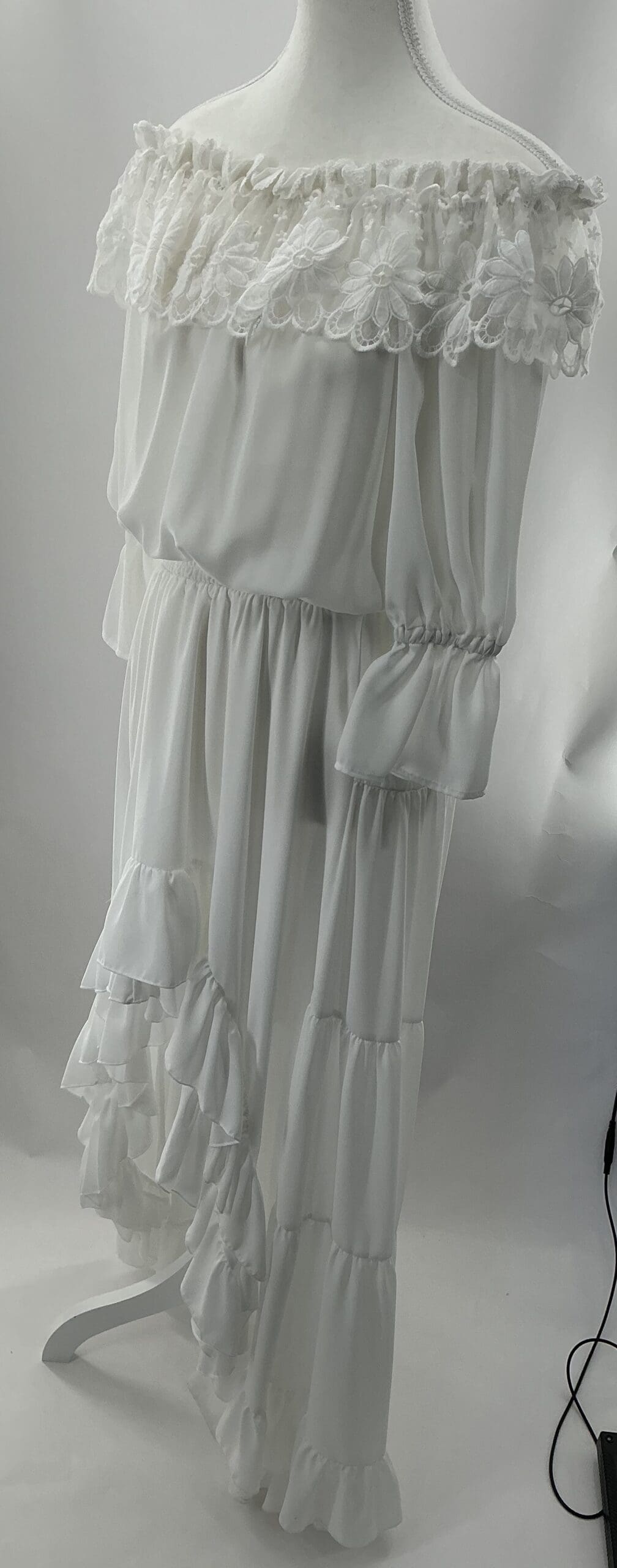 Mullet White Dress, Shoulder to Shoulder with Lace Detail. Long Sleeves. Brand: MONACO Busto/Chest:99Cm Comprimento/Length:1,32