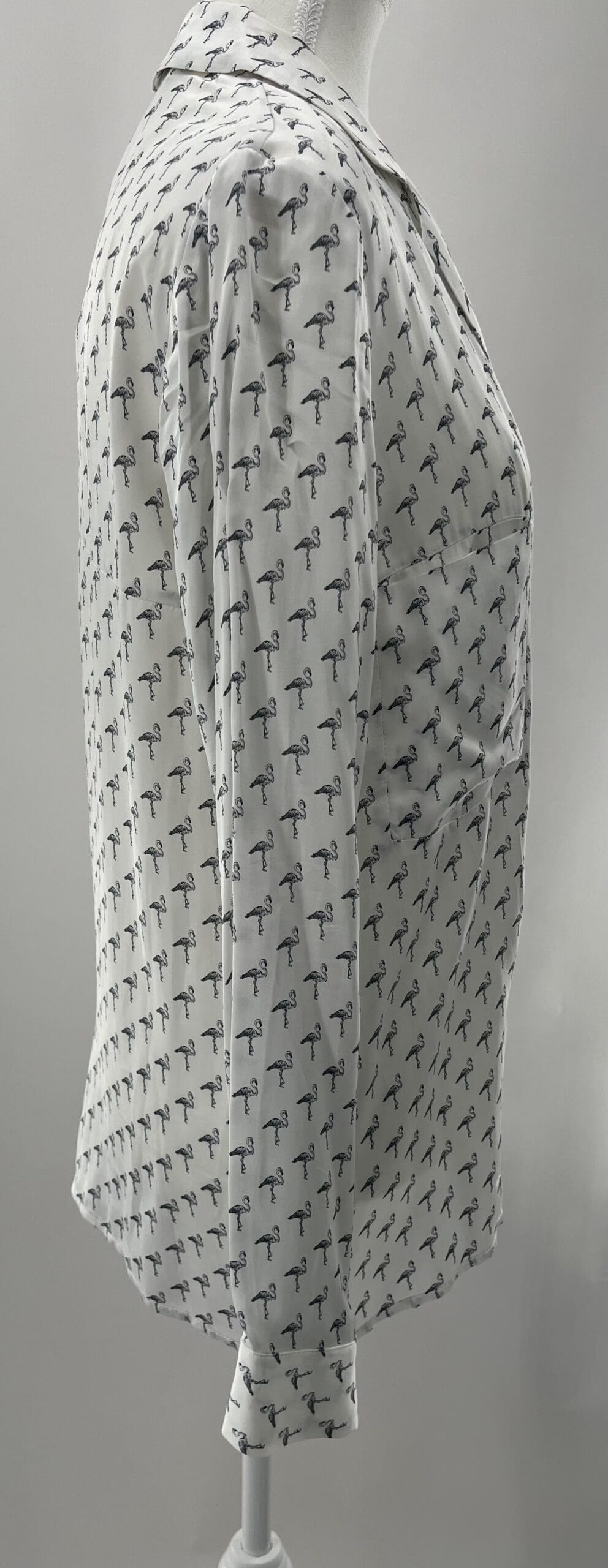 100% Viscose,White and Gray Flamingo’s printed Shirt. Made in Paris. Size:36 Brand: Margaux Lonhberg Busto/Chest: 92Cm Comprimento/length: 66Cm