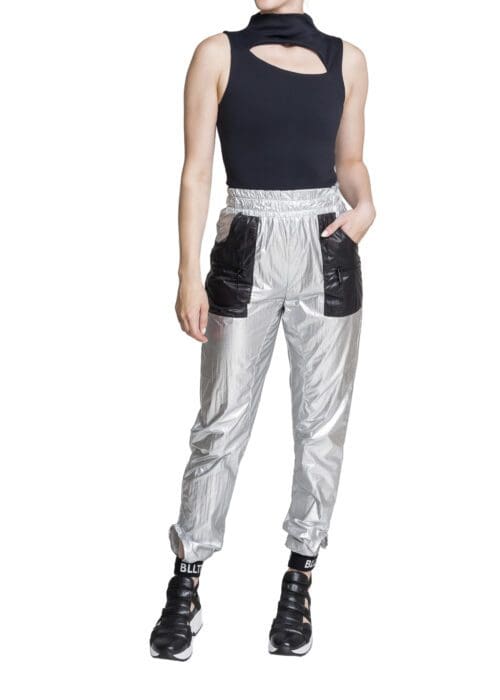 00CA017 – Silver Metallic With Zipper  Black Pockets